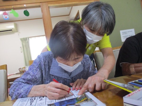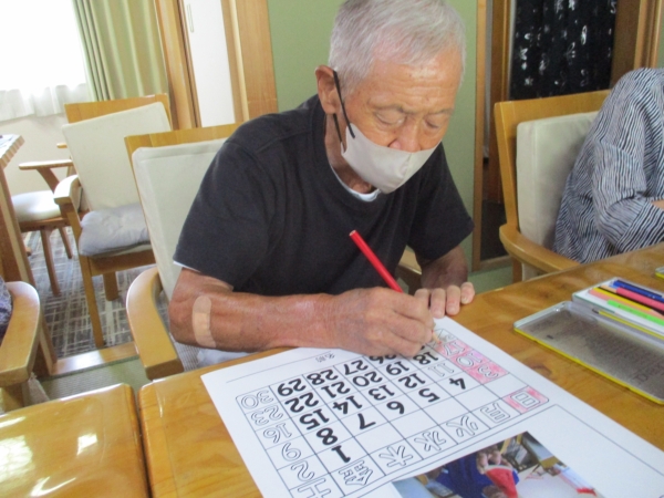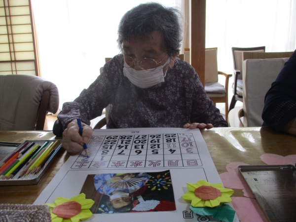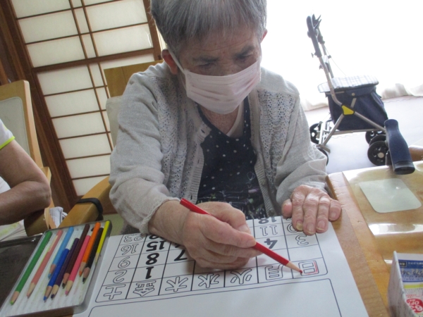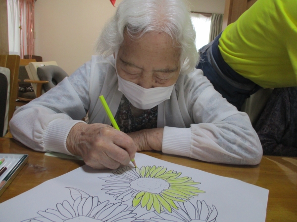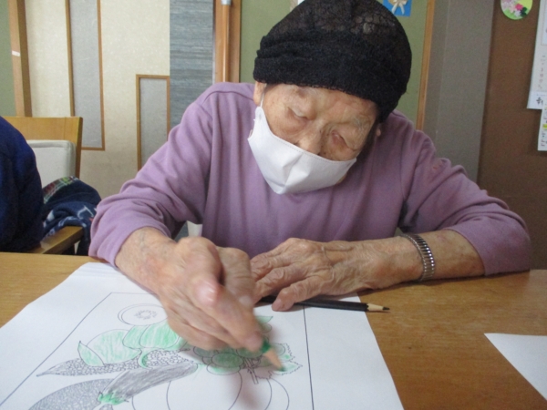 午前のレクは『季節の塗り絵』ですexclamation