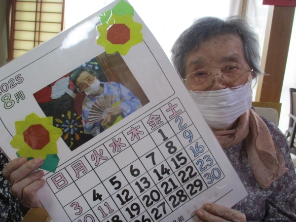 父・母の写真を添えて夏らしいカレンダーとなっています。