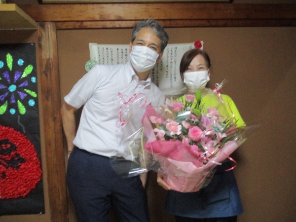 そこで、吉原社長がお花を持ってお祝いに駆けつけて下さいましたわーい (嬉しい顔)