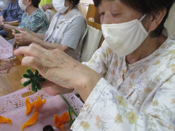 今度は、花のガクを作りますうれしい顔ハートたち (複数ハート)