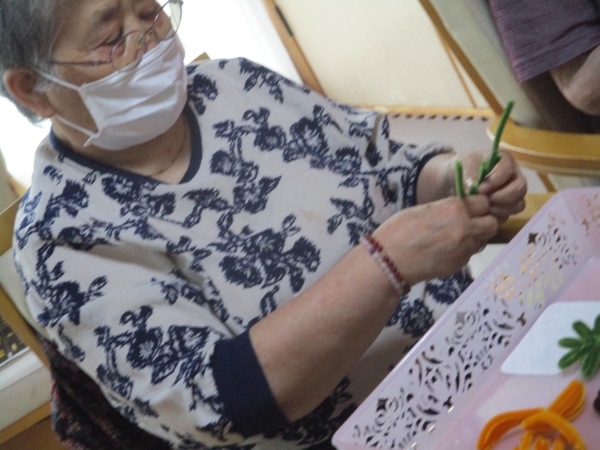 今度は、葉っぱを作っていますわーい (嬉しい顔)ハートたち (複数ハート)