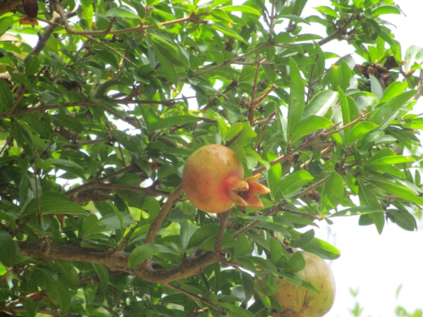 お庭のざくろの実がお日様をいっぱい浴びて、大きくなってきました~