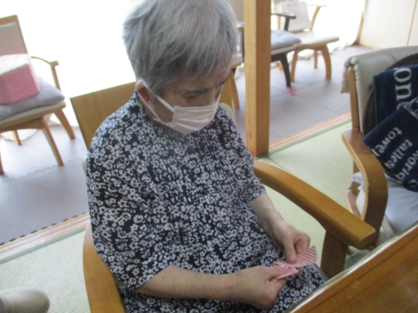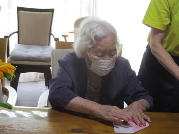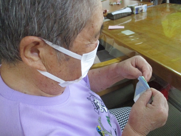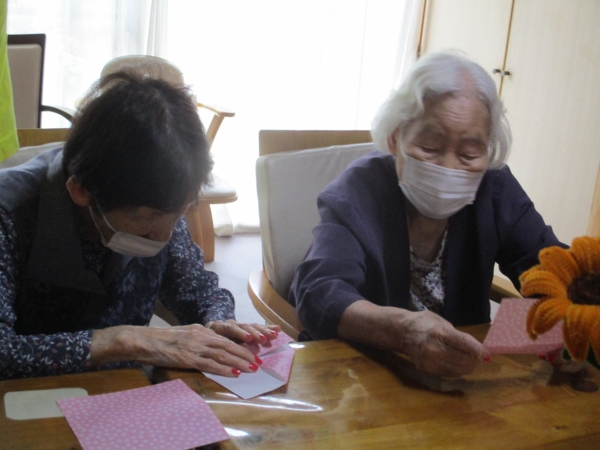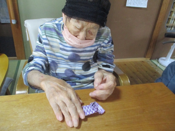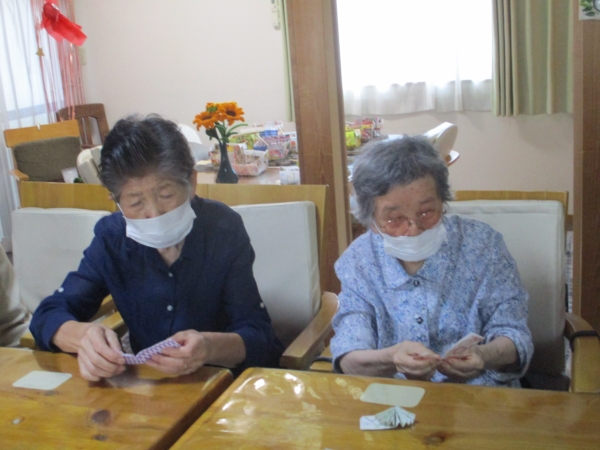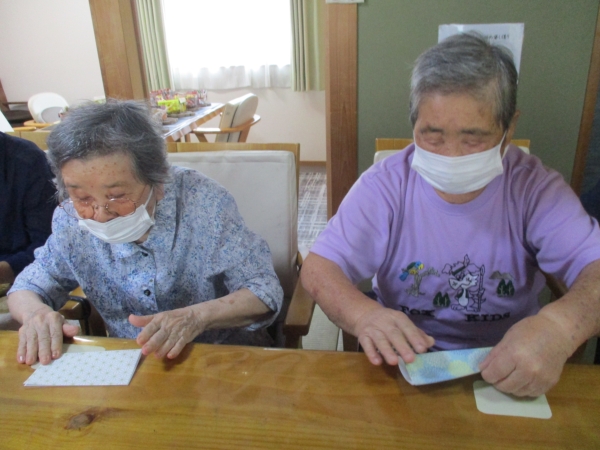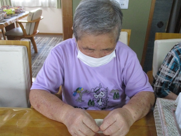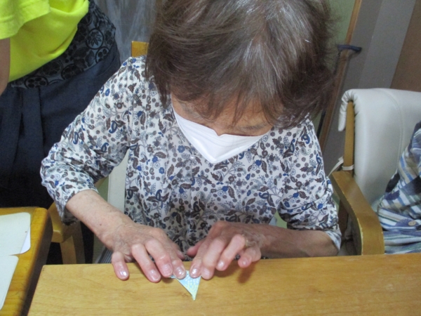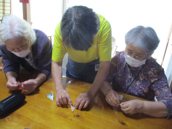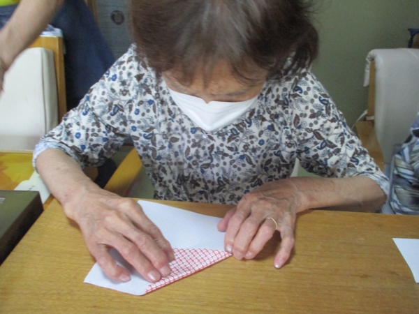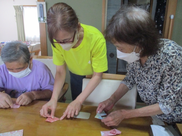 スタッフかおりんの説明に耳を傾け、着々と折り進めています