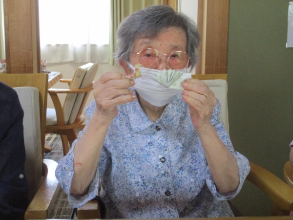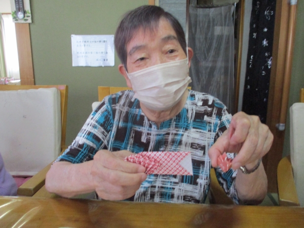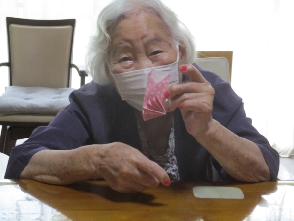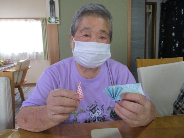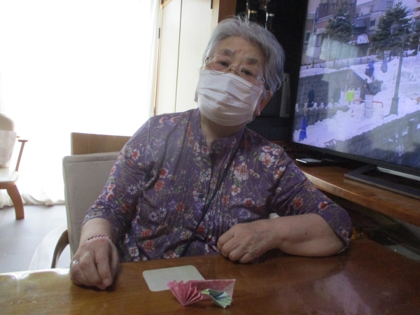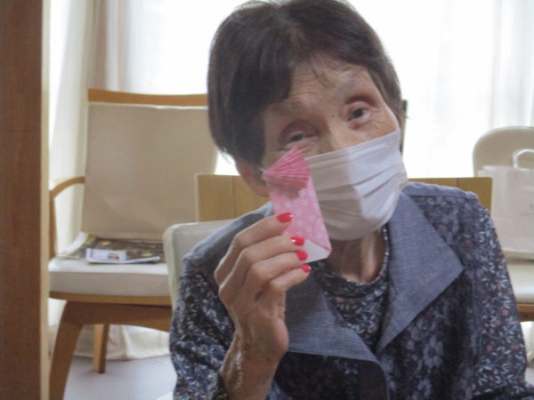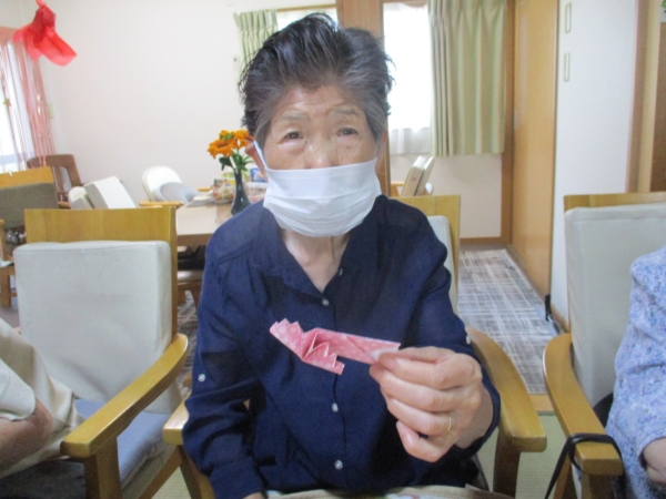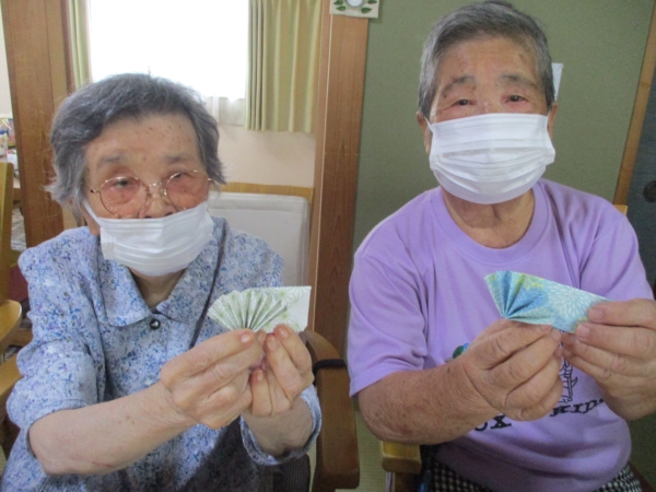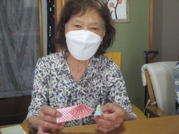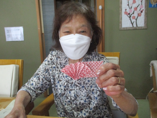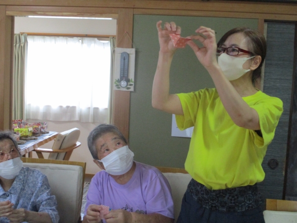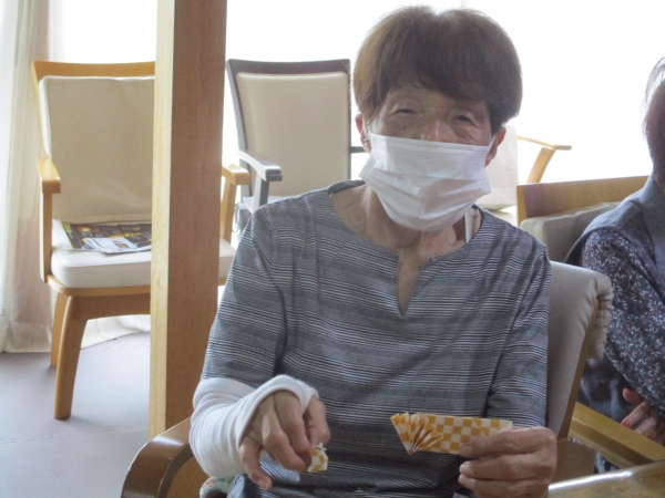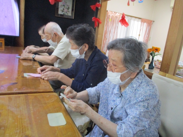 スタッフかおりんの説明に耳を傾け、着々と折り進めています