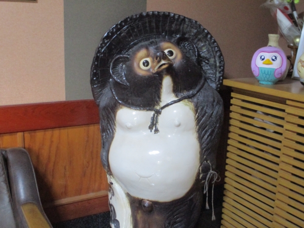 玄関では、タヌキさんが皆さんをお出迎えぴかぴか (新しい)ぴかぴか (新しい)ぴかぴか (新しい)
