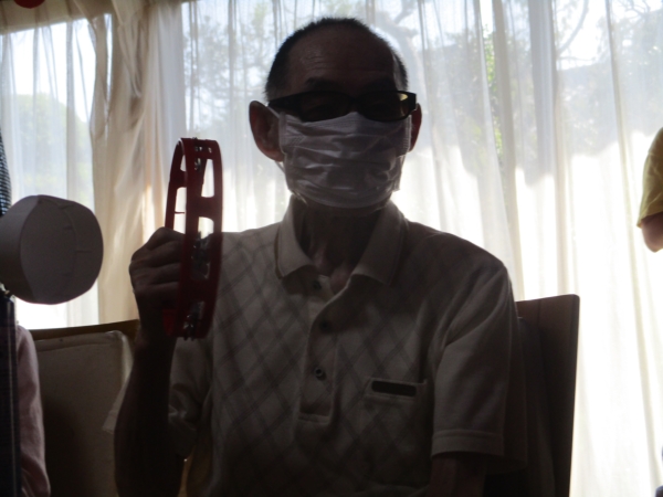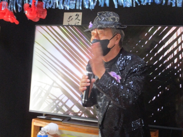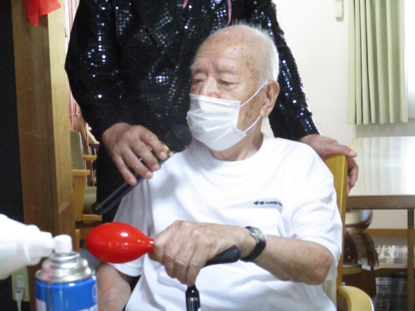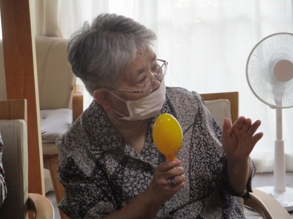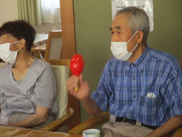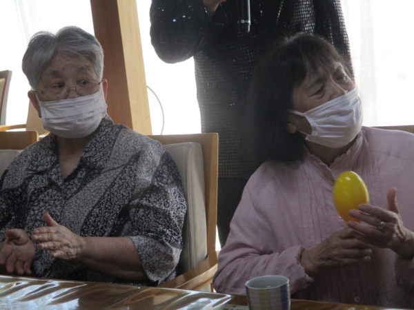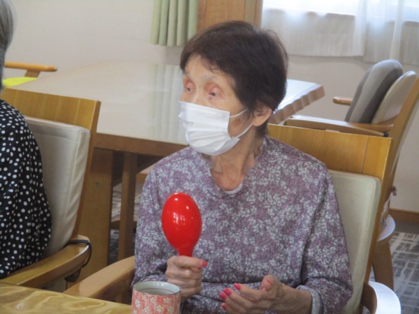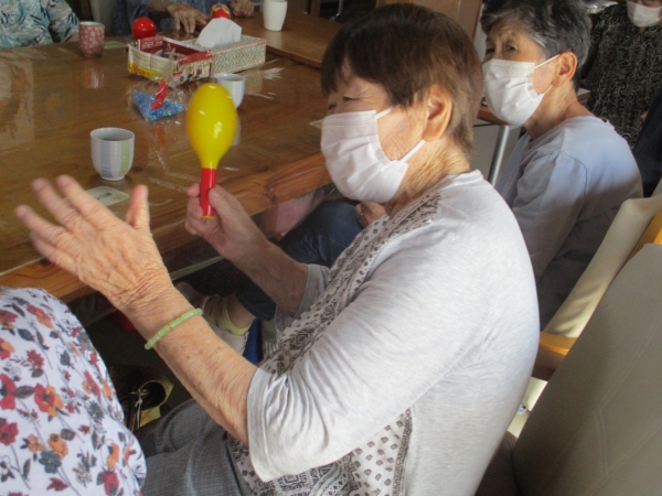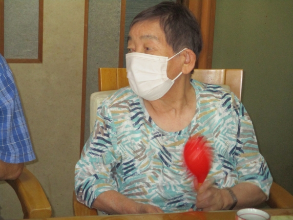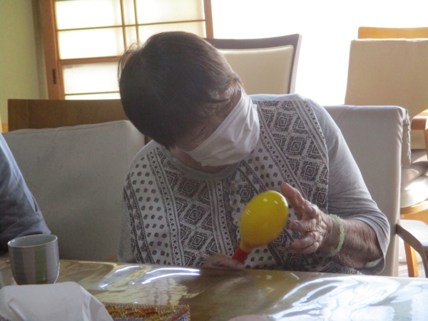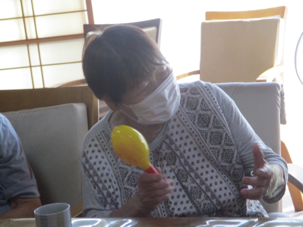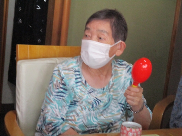 こちらの母は・マラカスをマイク代わりに