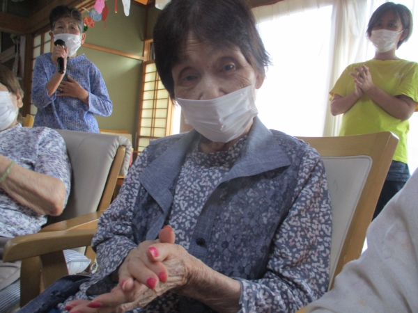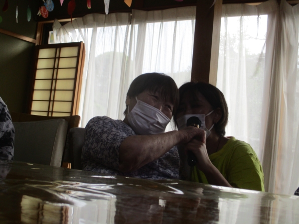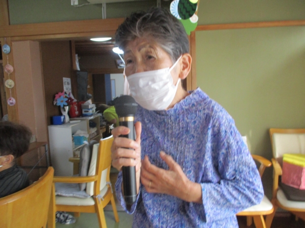 カラオケタイムで発声練習・口腔体操を兼ねて