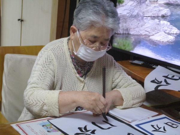 こうして皆さんと集中して書く習字は良いもんですねわーい (嬉しい顔)