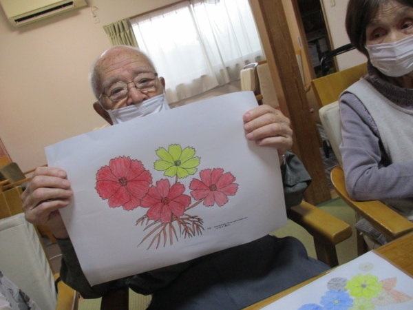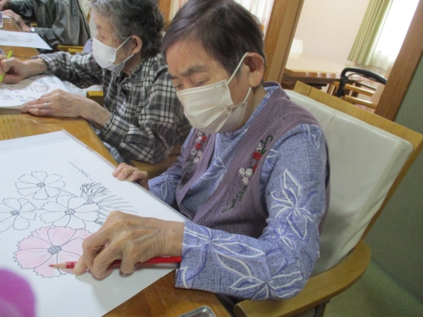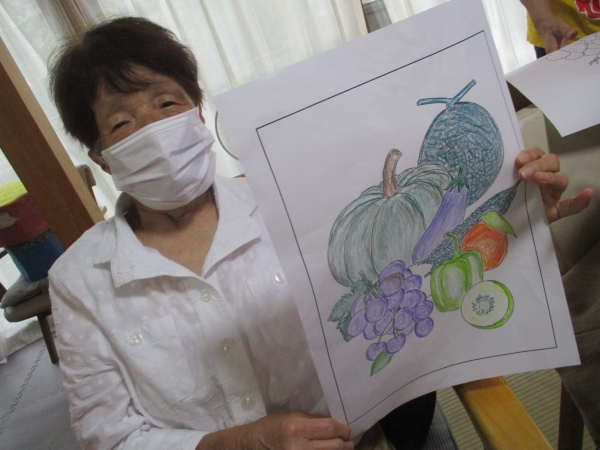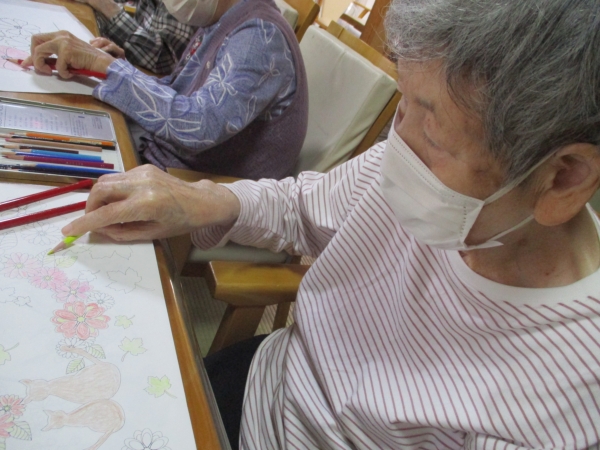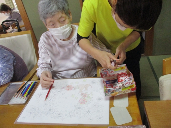 手の空いている方は、塗り絵を行って頂きましたうれしい顔ハートたち (複数ハート)