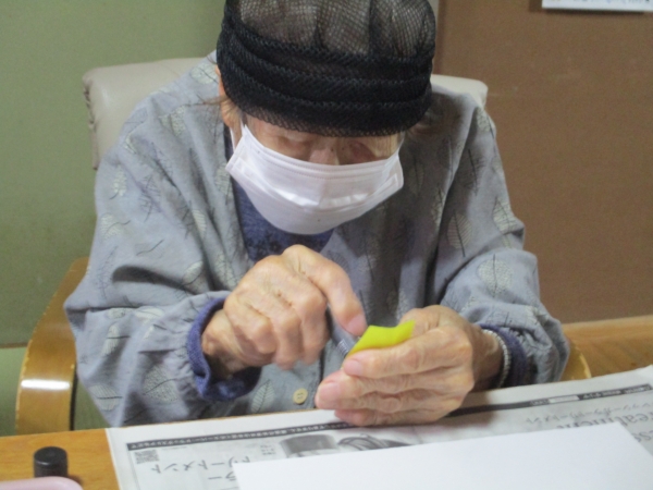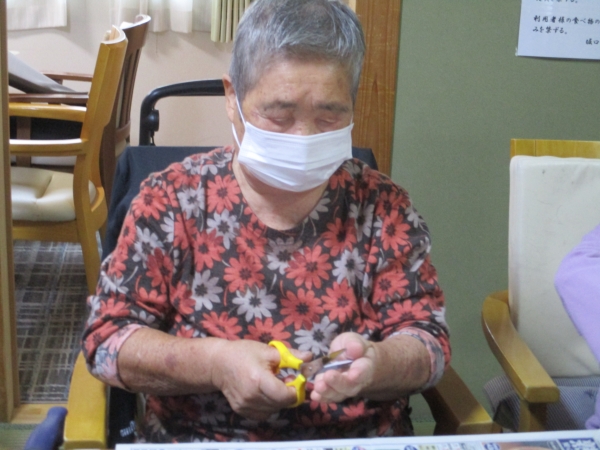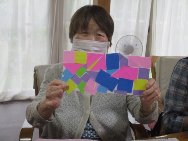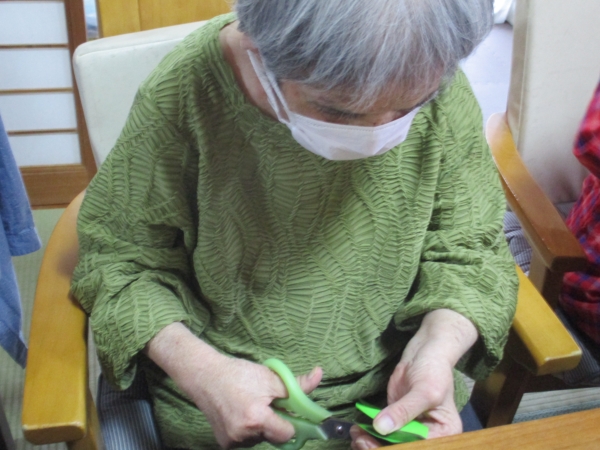 皆さんがハサミでチョキチョキと切っているのは…折り紙