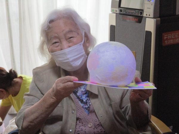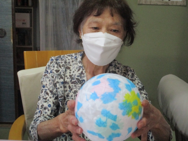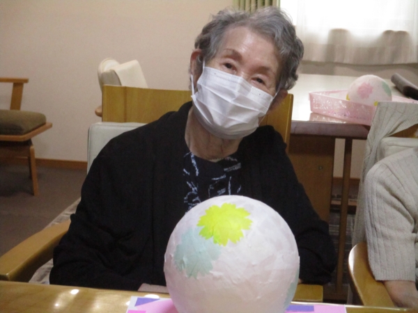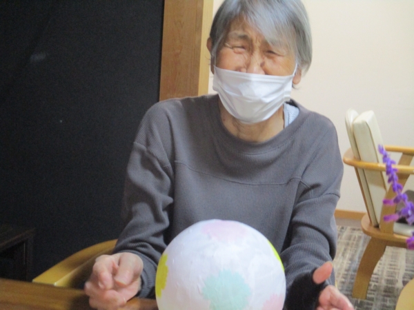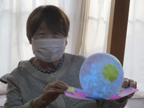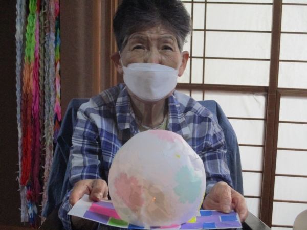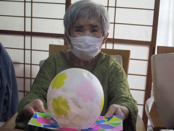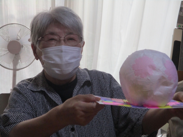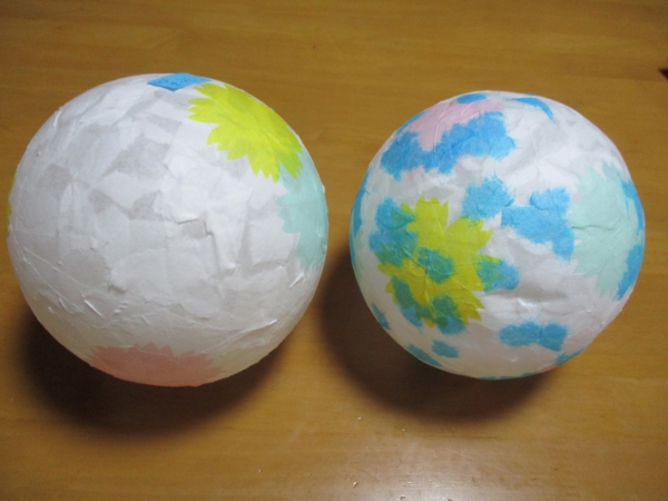 先週、風船に和紙を貼り付けて乾かしたものが↑こちらになります。