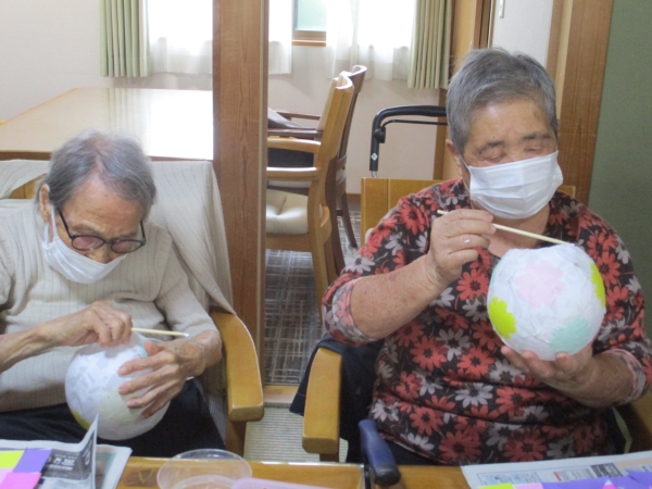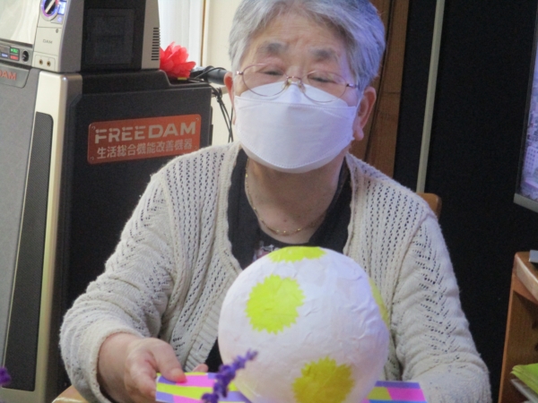 風船に和紙を貼り、ランプの傘の部分を作った様子をお伝えしました。