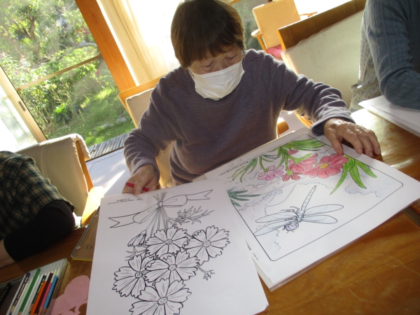 皆様、それぞれ思い思いに色を塗って、集中しながら