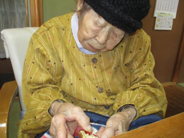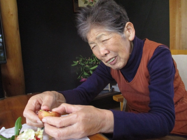 スタッフみっちゃんの長野のお土産のりんごを食べました