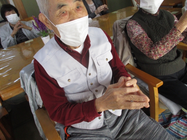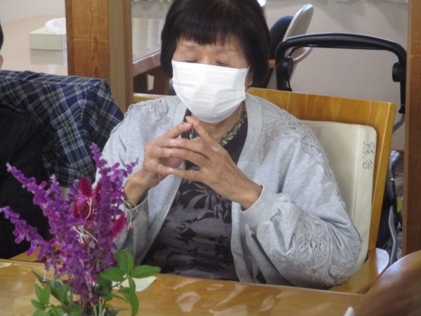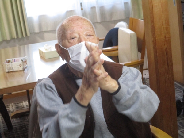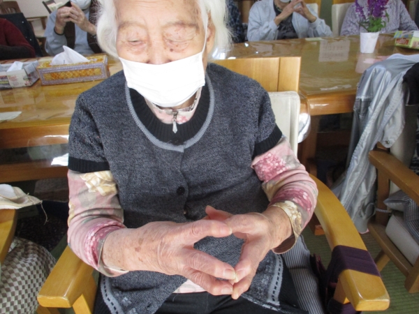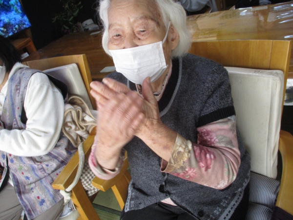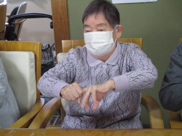 「薬指難しいね~わーい (嬉しい顔)ハートたち (複数ハート)」と笑顔で手指体操行ってくれましたうれしい顔ハートたち (複数ハート)