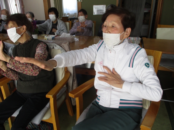 手指体操、皆さんと一緒に楽しく出来ました~わーい (嬉しい顔)ハートたち (複数ハート)