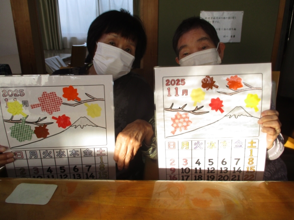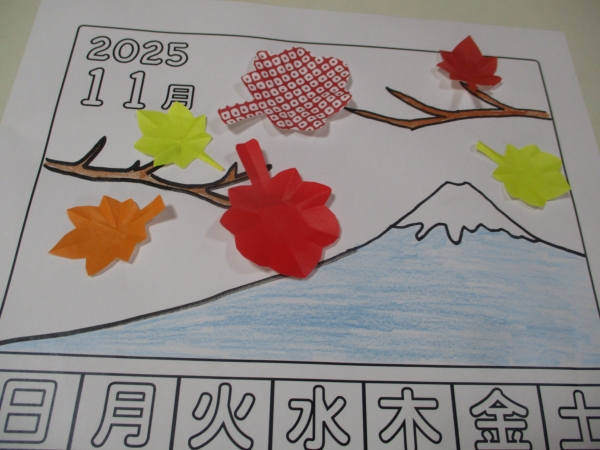 きれいな紅葉カレンダー出来上がりましたうれしい顔ハートたち (複数ハート)
