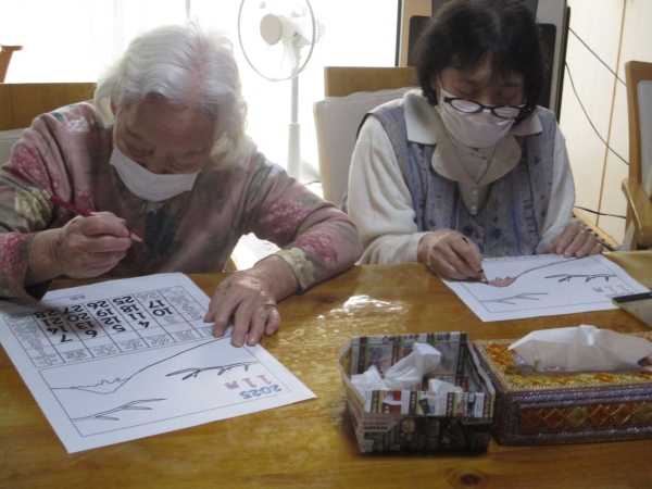 午後からは、カレンダー作りうれしい顔ハートたち (複数ハート)