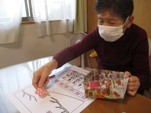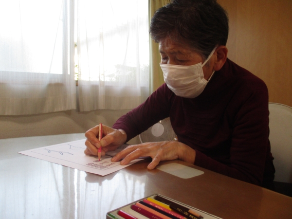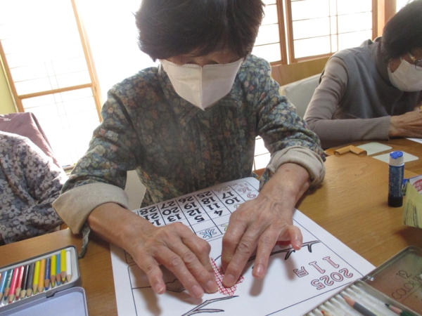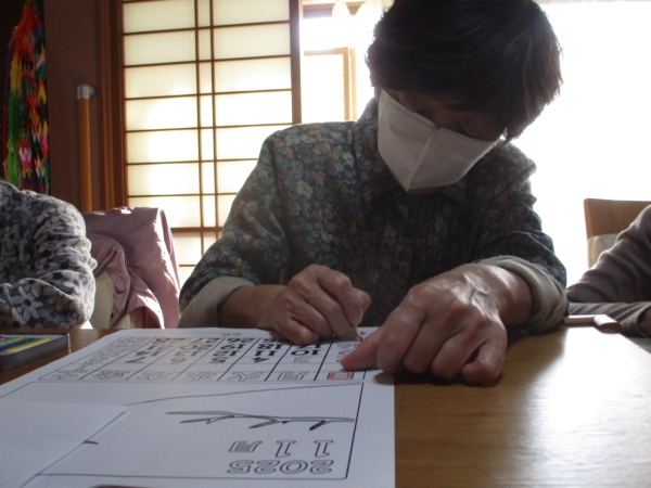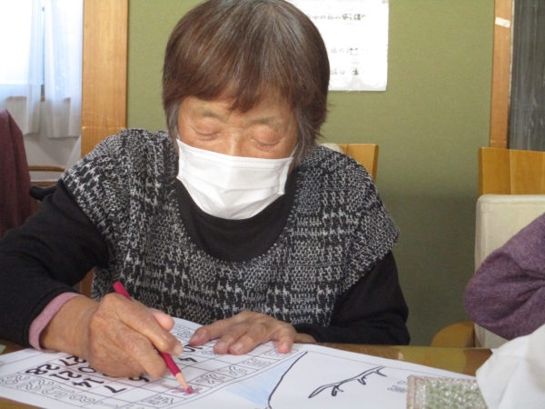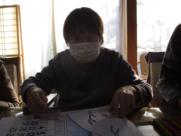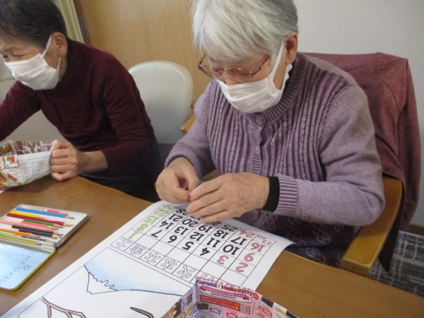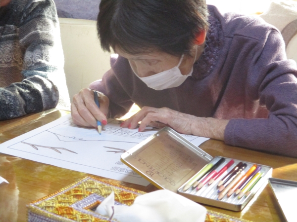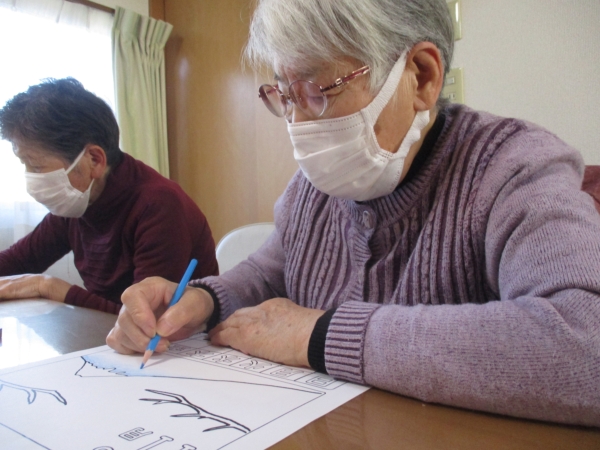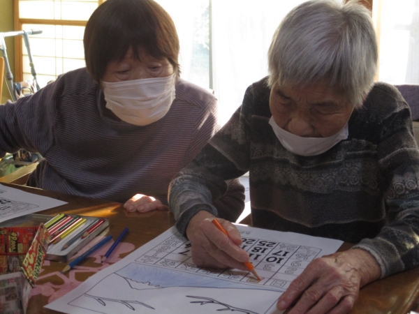 富士山や枝の塗り絵を行っていきます(^_-)-☆