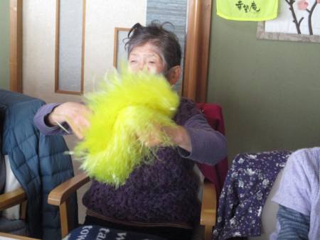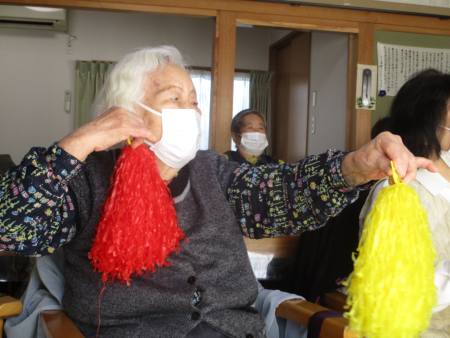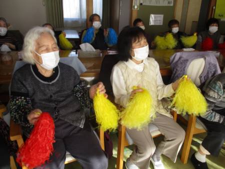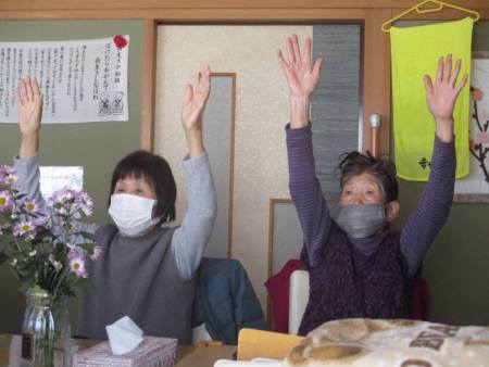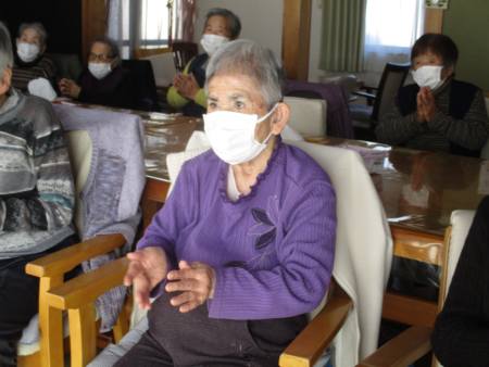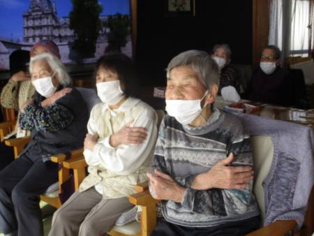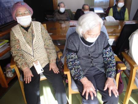 歌いながら手拍子を打っての体操、ちょっと難しいけど