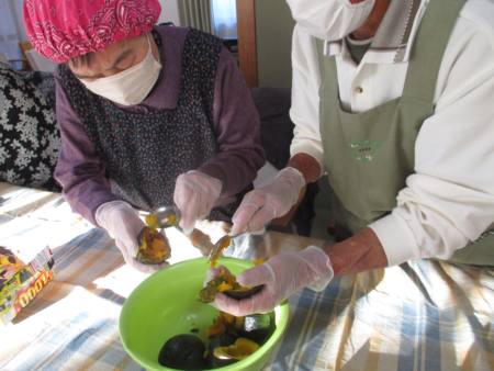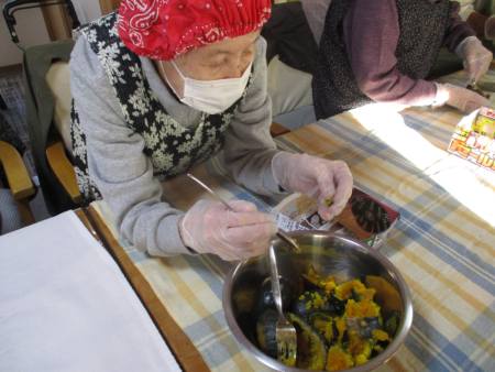 事前に、スタッフかおりんがかぼちゃを蒸かしてくれているので