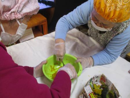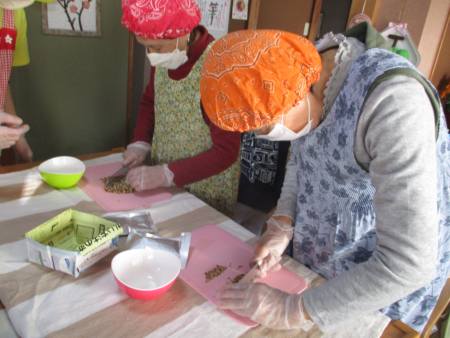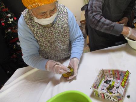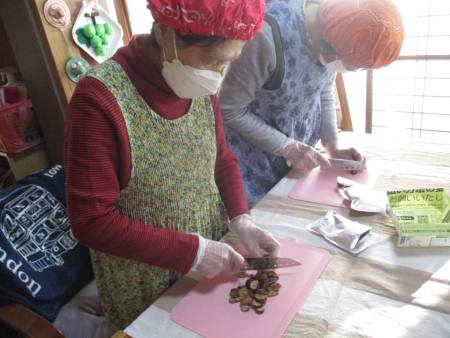 こちらのチームは、甘栗を細かく切ってくれています