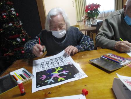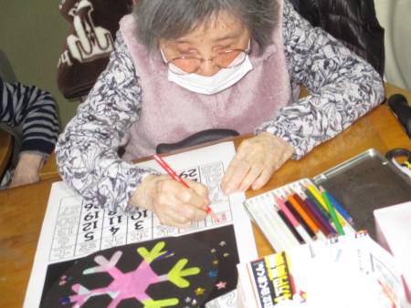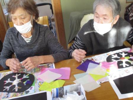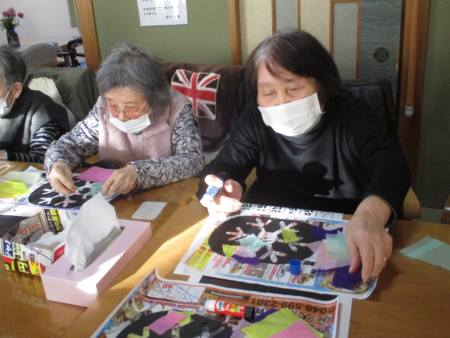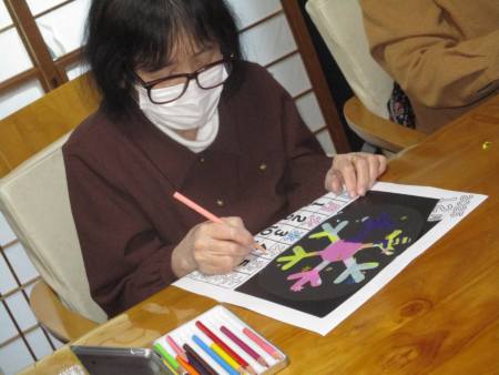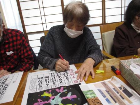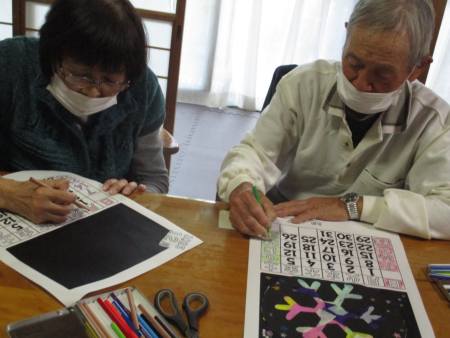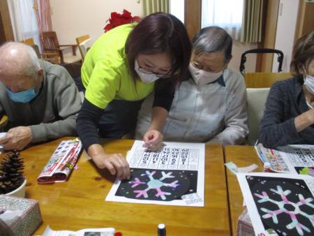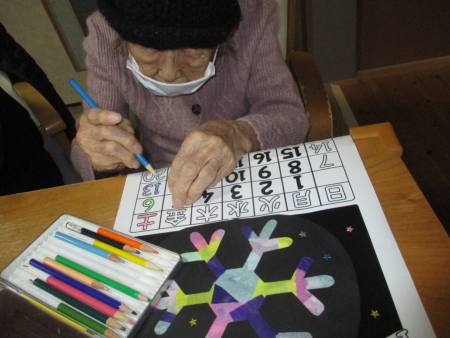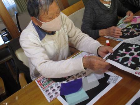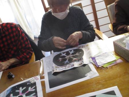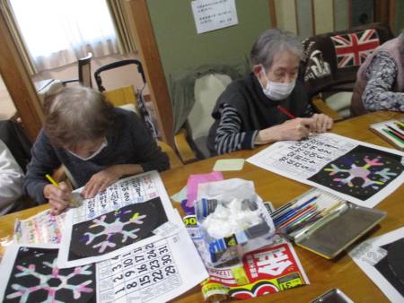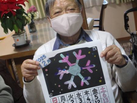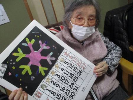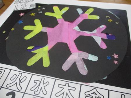 午後は、こちらの雪の結晶の模様を使ってカレンダー作り