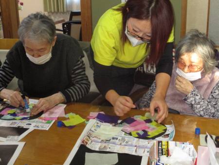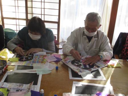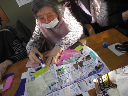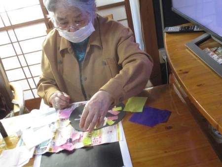 台紙に色とりどりのお花紙を使い、ちぎって貼っていきます