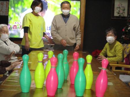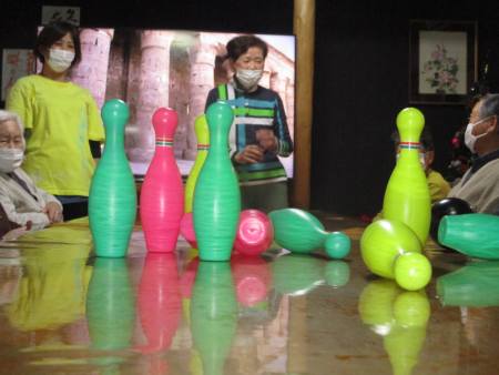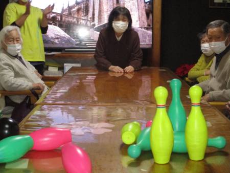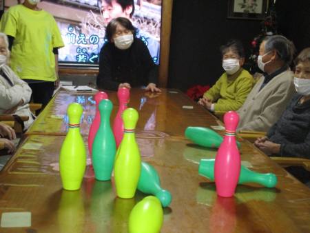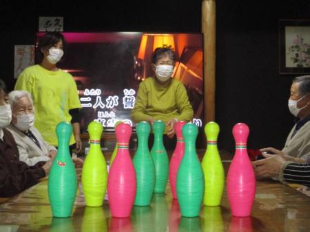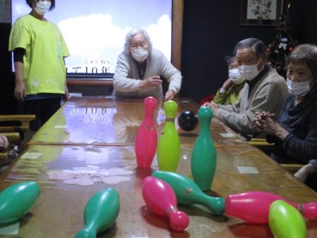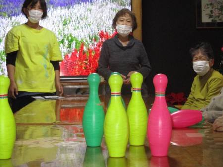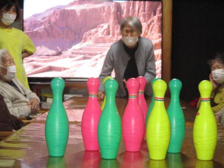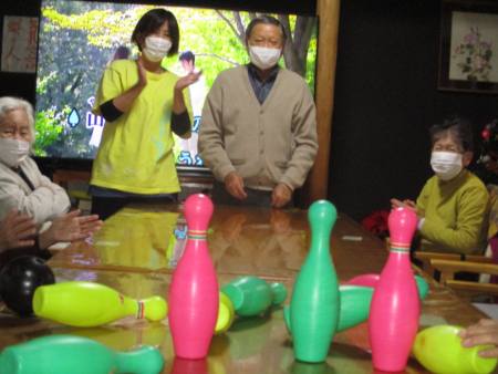 続いて母は…4本倒して6本のピンが残ってしまいました