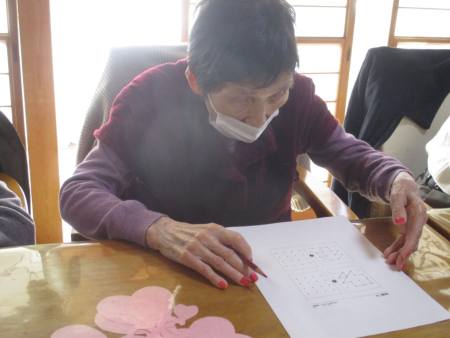 今日は、点と点を結んで同じ形にして行く点結びなんです。
