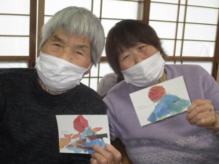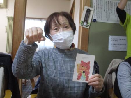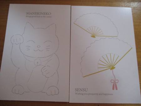 午後は富士山やダルマ、招き猫などの縁起の良い下絵を使って