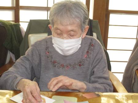 細かくちぎって繊細に貼り付ける母