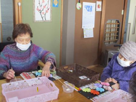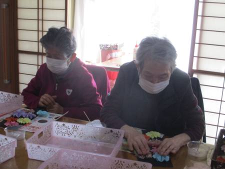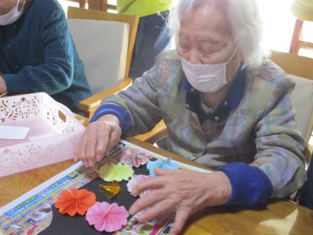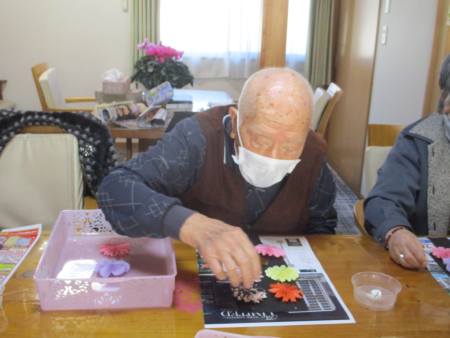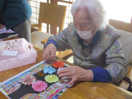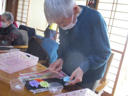 イメージが出来たら、ボンドでお花を貼り付けていきます。