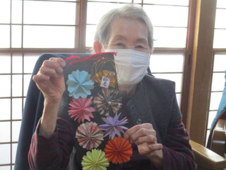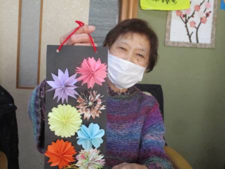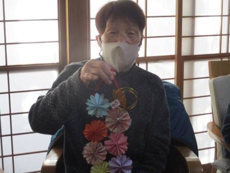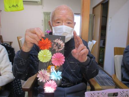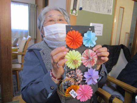 お花1つ1つ折り紙で折ったり切ったり…