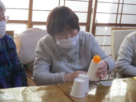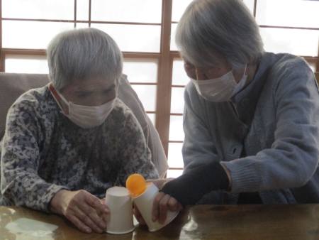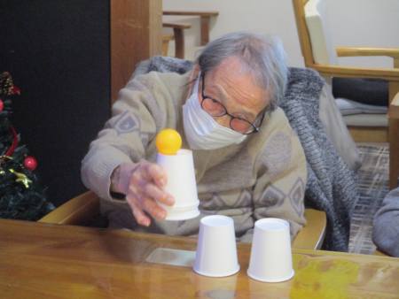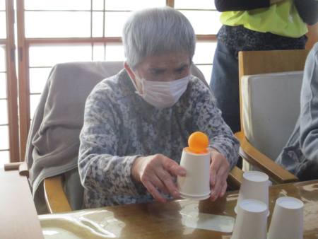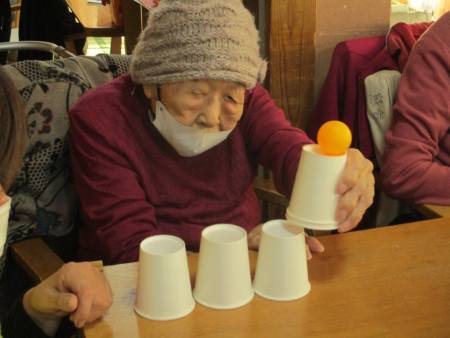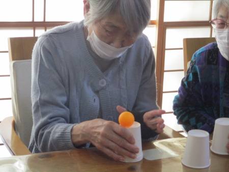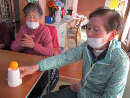 紙コップの底を上にしてピンポン玉を乗せて~~~