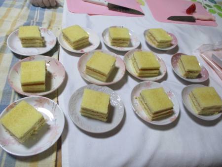 3段のスポンジに生クリームとイチゴがサンドされました~