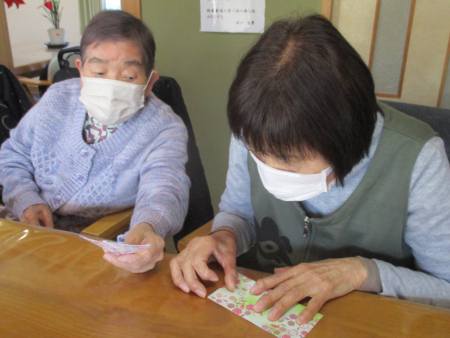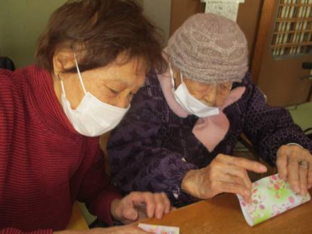 なにやら可愛い折り紙で作品作りかな(´-ω-`)