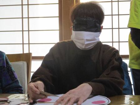目隠しをして…