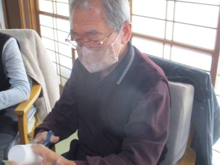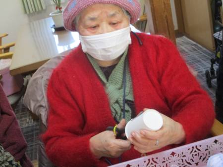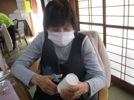 先ずは紙コップを印に合わせて