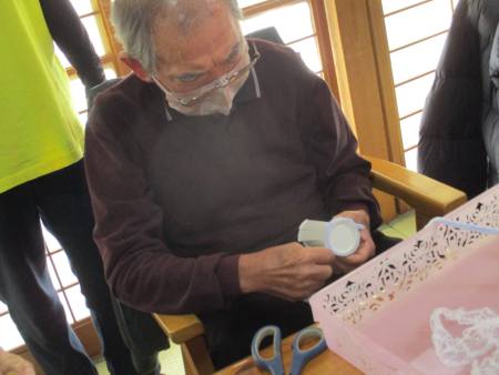 父母達は器用にハサミを使って
