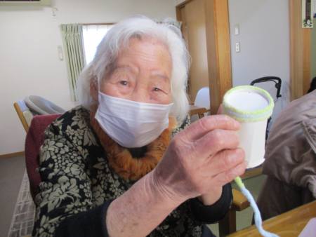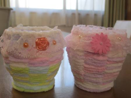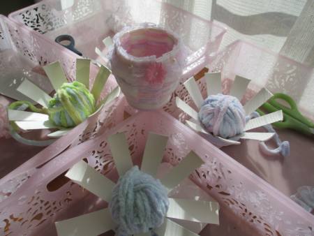 開いた紙コップに毛糸を