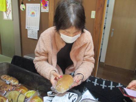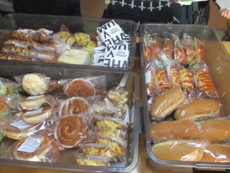 近くのパン屋さんがパンを販売に来てくれましたグッド (上向き矢印)