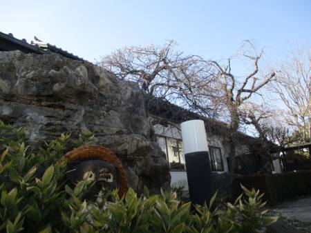 幸せの幸望庵の玄関には大きなタヌキさんが