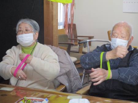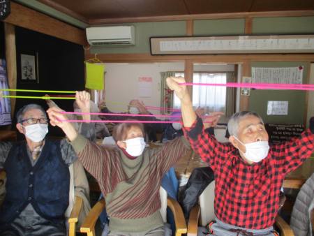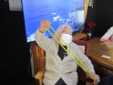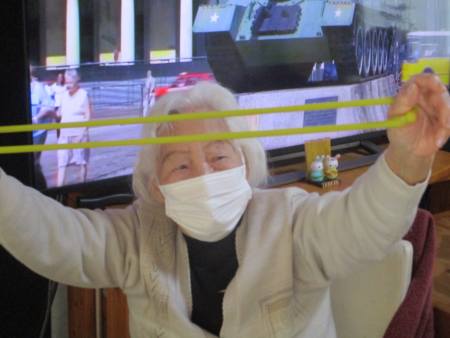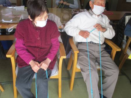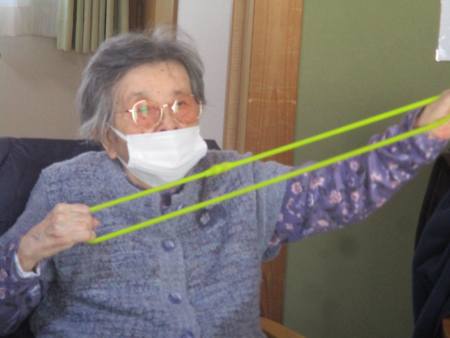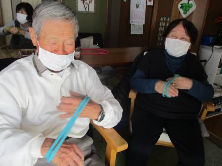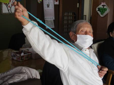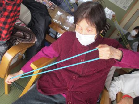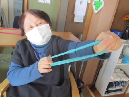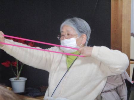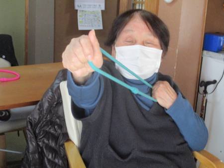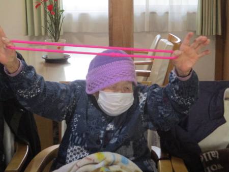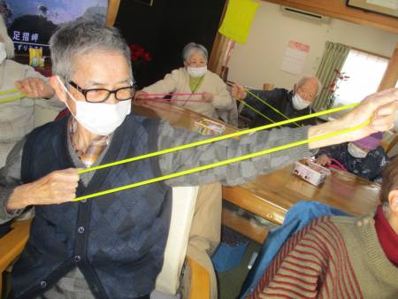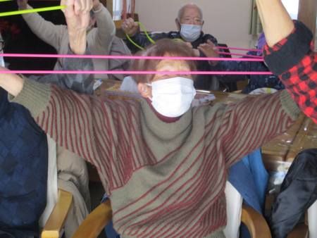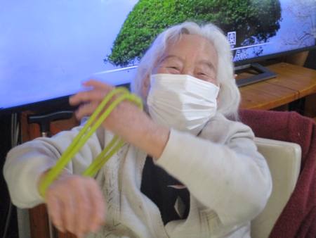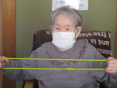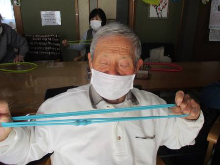 ゴムを両手で持ち、ビューンと腕を伸しますよ~。