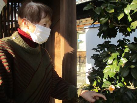 葉っぱに隠れてひっそり咲いていた寒椿の花