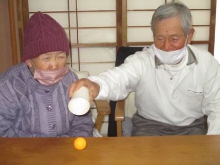 ピンポン玉を相手に向かいコロコロ~あせあせ (飛び散る汗)