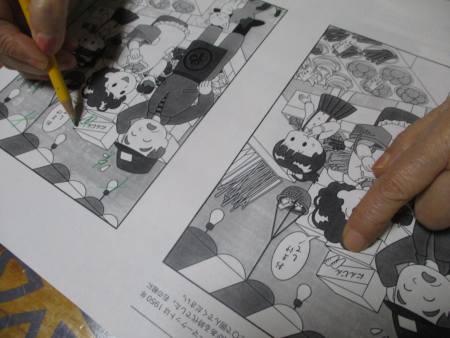 父も母も左右の絵を見比べて