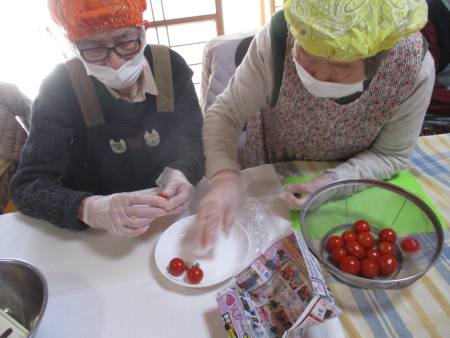 トマトも半分に切ったり