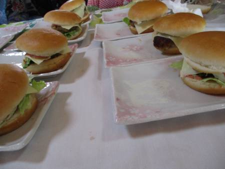 ホットプレートにパティを乗せて焼いていきます