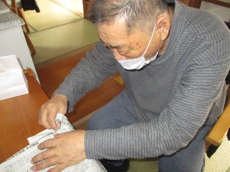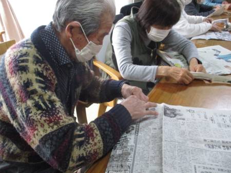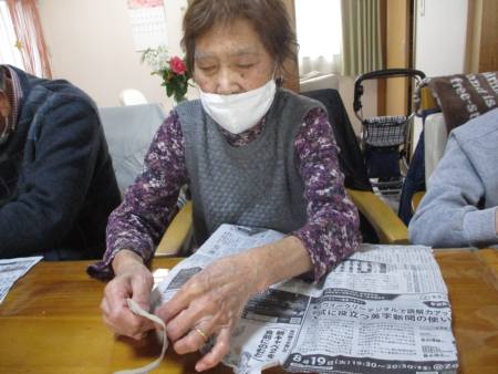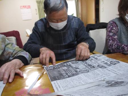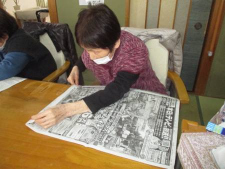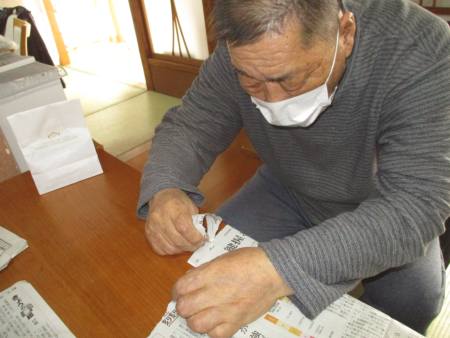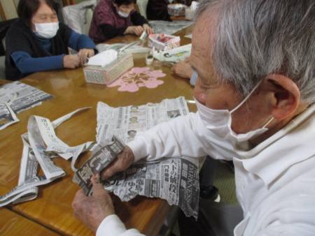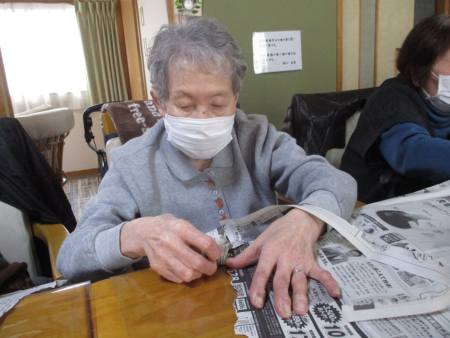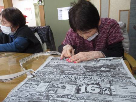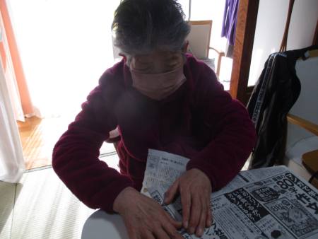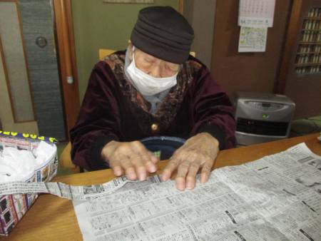 指先を細やかに動かして新聞紙を